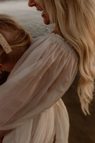 Our Illoura Gown in Honey is a timeless wrap dress crafted in crisp, lightweight organza, designed to move beautifully with the body. With adjustable wrap styling and the option to wear on or off the shoulder, it offers an easy, flattering fit that’s both bump-friendly and breastfeeding-friendly.